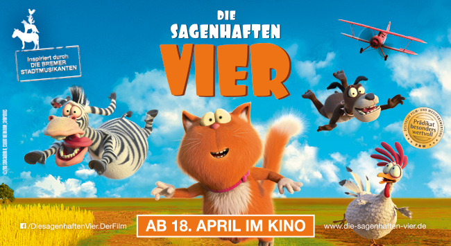 Inspiriert durch das Märchen : DIE BREMER STADTMUSIKANTEN Ab 18. April im Kino Unterstütz von Germany Retevis Technology DIE SAGENHAFTEN VIER ist ein lustig-spannendes Kinoabenteuer für die ganze Familie! Ausgezeichnet mit dem Prädikat „besonders wertvoll“. Die pummelige Hauskatze Marnie wird wie ein Menschenkind verwöhnt. Sie hat ihr eigenes Zimmer mit riesigem Fernseher und …